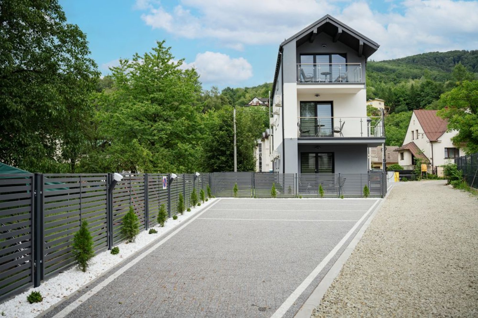 Zapraszamy do Apartamentów Nadrzeczna, nowo oddanych i komfortowo wyposażonych apartamentów w Ustroniu, idealnych dla łącznie 18 gości. Pięć dostępnych apartamentów oferuje piękny widok na górę Czantorię, tworząc idealne warunki dla miłośników górskiego krajobrazu. Dodatkowym atutem jest prywatny ogród z meblami ogrodowymi, dostępny wyłącznie dla gości apartamentów, umożliwiający relaks na świeżym powietrzu w spokojnej atmosferze.
